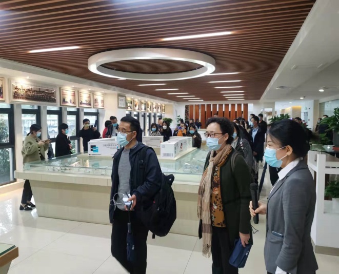 乘坐公司大巴車及自駕前往的企業高管們經過嚴格的防疫審查和登記,簽到后乘坐大巴車前往皇隆制藥。